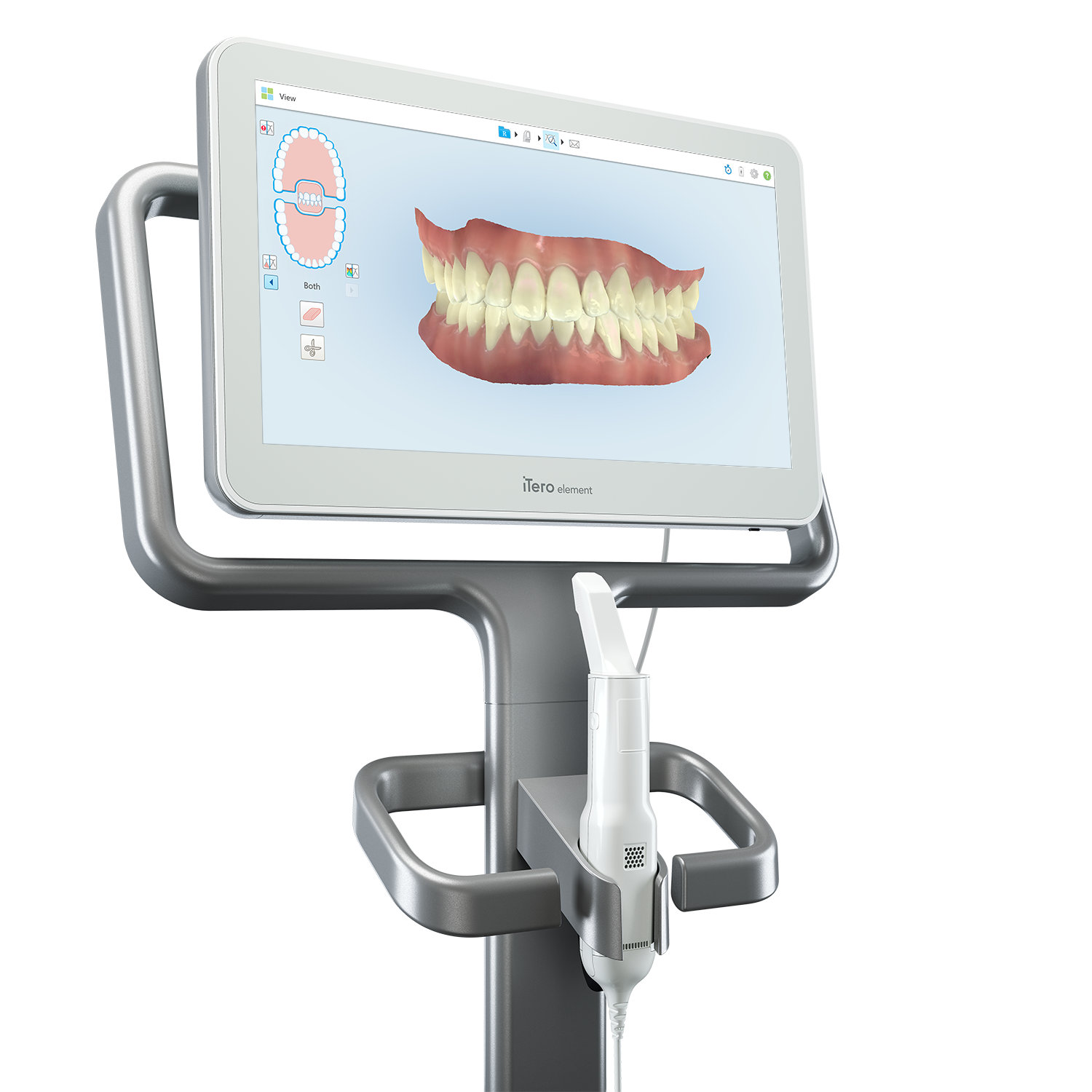 インビザライン治療ですが、これまでは治療開始前にマウスピースを作製するためのシリコン素材を使用した歯型を取り、それをアメリカのインビザライン工場に送り、インビザライン工場の特殊な専用スキャナにて歯型からデータ抽出をするという手間をとっていました。しかし、当院ではシリコン素材を使用せず、口腔内専用カメラ(スキャナ)のアイテロで、直接歯を撮影できる機械を正式に導入しております。